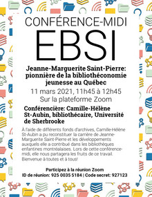 Conférence-midi à l'EBSI- Jeanne-Marguerite Saint-Pierre: pionnière de la bibliothéconomie jeunesse au Québec