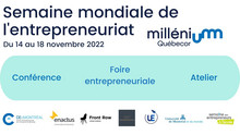 Millénium Québecor vous invite à découvrir votre fibre entrepreneuriale en participant à la Semaine mondiale de l’entrepreneuriat qui aura lieu du 14 au 18 novembre 2022. Trois activités vous sont proposées :
