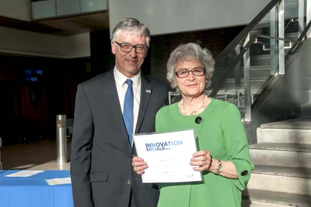 Le 6 mai 2015, lors de la Soirée Bravo à nos chercheurs, Louise Nadeau a été honorée dans la catégorie Innovations sociales. Sur la photo: Mme Nadeau en compagnie de Serge Brochu, alors Vice-recteur adjoint à la recherche – lettres et sciences humaines à l'UdeM.