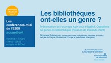 Conférences-midi à l'EBSI-Les bibliothèques ont-elles un genre? 'Agir pour l'égalité. Questions de genre en bibliothèque' (Presses de l'Enssib, 2021)