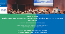 Cette table ronde promet une exploration approfondie des diverses facettes cruciales de la relation entre les statistiques sociales et les politiques publiques. Les panélistes discuteront des sources de données disponibles, des impacts concrets sur les politiques, d'innovation méthodologique, de vulgarisation des résultats, de collaboration, de durabilité des impacts, et des priorités futures en statistiques sociales.