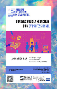 Le CRILCQ a le plaisir de vous inviter à un atelier de formation portant sur la rédaction d'un CV professionnel.