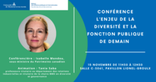 Isabelle Mondou, sous-ministre du Patrimoine canadien et diplômée de l’Université de Montréal, présentera plusieurs enjeux liés à la diversité et échangera par la suite avec Tania Saba, professeure titulaire au département des relations industrielles et titulaire de la chaire BMO en diversité et gouvernance.