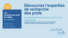 Conférences-midi à l'EBSI-Découvrez l'expertise de recherche des profs : une diversité de facettes en sciences de l'information!
