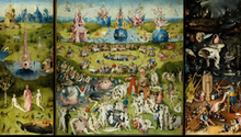 Réalisé à la fin du XVe siècle par Jérôme Bosch, Le Jardin des délices est l’œuvre la plus emblématique de la fin du Moyen Âge. Contemporain de Léonard de Vinci et d’Albrecht Dürer, Bosch est un artiste flamand très prisé par les milieux aristocratiques et lettrés de son époque pour lesquels il réalisera de nombreuses œuvres.