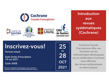Cochrane Canada Francophone, avec le soutien de la composante « Recherche sur les systèmes de santé et services sociaux, l’application des connaissances et la mise en œuvre » de l'Unité de SOUTIEN-SRAP du Québec, organise cette formation pour préparer les enseignants, étudiants, résidents, chercheurs, cliniciens, professionnels de la santé, gestionnaires ou décideurs à réaliser ou utiliser le produit d’une revue systématique, selon la méthodologie et les standards Cochrane.