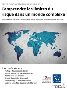 Cette visioconférence a lieu dans le cadre de la série de conférences hiver 2020 'Comprendre les limites du risque dans un monde complexe”.