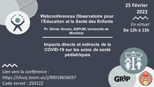 Bien que la COVID-19 aie affecté moins sévèrement directement les enfants que les adultes, un certain nombre d'enfants ont tout de même requis une hospitalisation soit pour la maladie aigüe ou pour un syndrome inflammatoire multisystémique de l’enfant. Notre groupe de recherche pan-canadien a réalisé une étude prospective afin d'identifier les facteurs de risque associés à un besoin d'hospitalisation ainsi que les issues de ces patients. En parallèle, les hôpitaux pédiatriques ont subis de très grandes variations de leur achalandage, incluant pour la santé mentale et les maladies non-infectieuses, qui méritent notre attention.