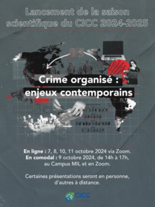 Cet événement se déroule sur plusieurs jours avec des sessions en ligne via Zoom et une journée en présentiel. Les conférences et discussions aborderont divers thèmes liés au crime organisé, à la cybercriminalité et au rôle des femmes dans ces contextes. Une session hybride se tiendra à l'Université de Montréal le 9 octobre, avec des présentations, une remise de prix, et un cocktail en présentiel. De plus, un concours d'affiches scientifiques est organisé pour les étudiants encadrés par un chercheur du CICC.