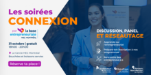 La base entrepreneuriale HEC Montréal présente Les Soirées Connexion, une série de 4 événements d'ateliers-réseautage qui se dérouleront cet automne en présentiel à HEC Montréal. Ces événements s'inscrivent dans le cadre de notre appel à candidatures pour nos programmes d'accompagnement en entrepreneuriat: le Parcours Rémi-Marcoux, EntrePrism et l'Accélérateur Banque Nationale HEC Montréal.