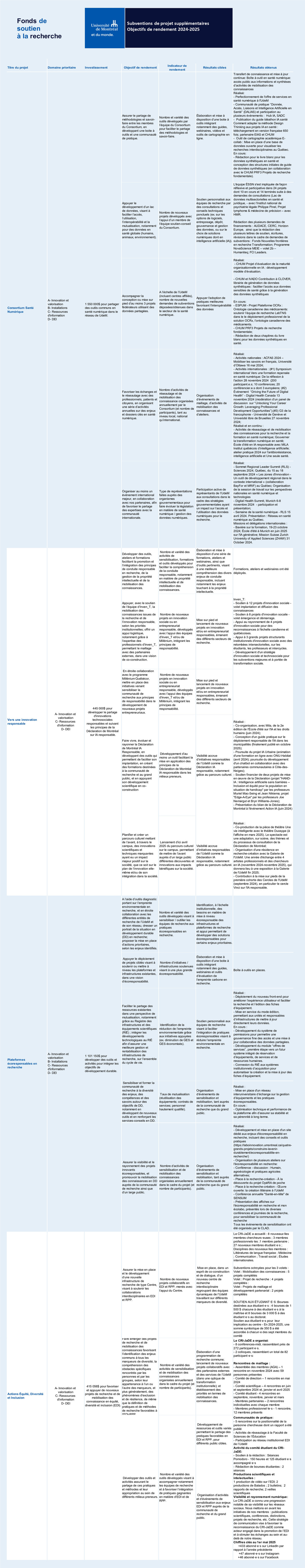 Pour l’exercice 2024-2025, l'UdeM et ses établissements affiliés se partageront la somme de 3 411 206$ du programme Subventions de projet supplémentaires.