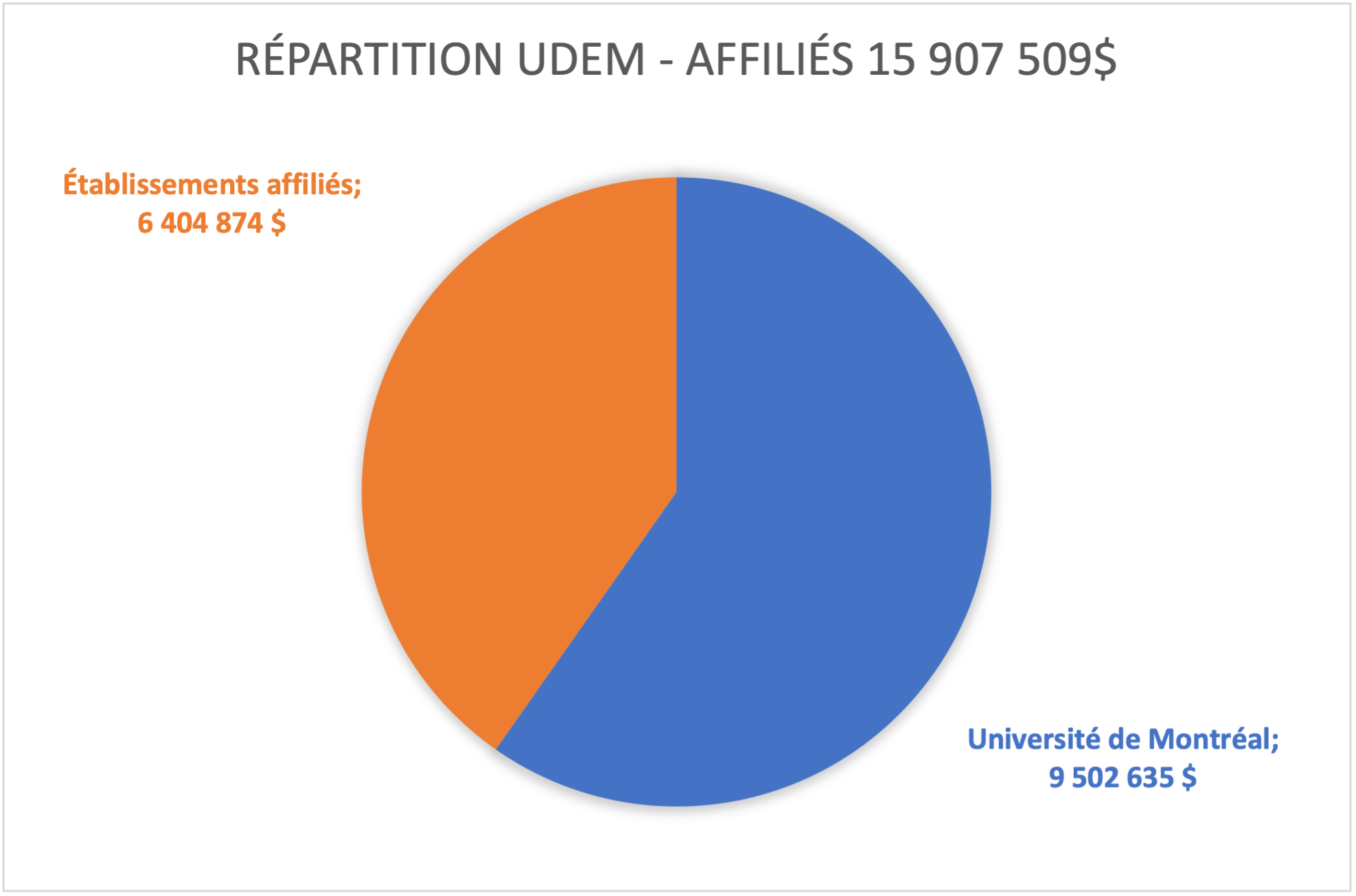 Pour l’exercice 2025-2026, l'UdeM et ses établissements affiliés se partageront une subvention de 15 907 509,00$ (excluant les subventions de projet supplémentaires) :
